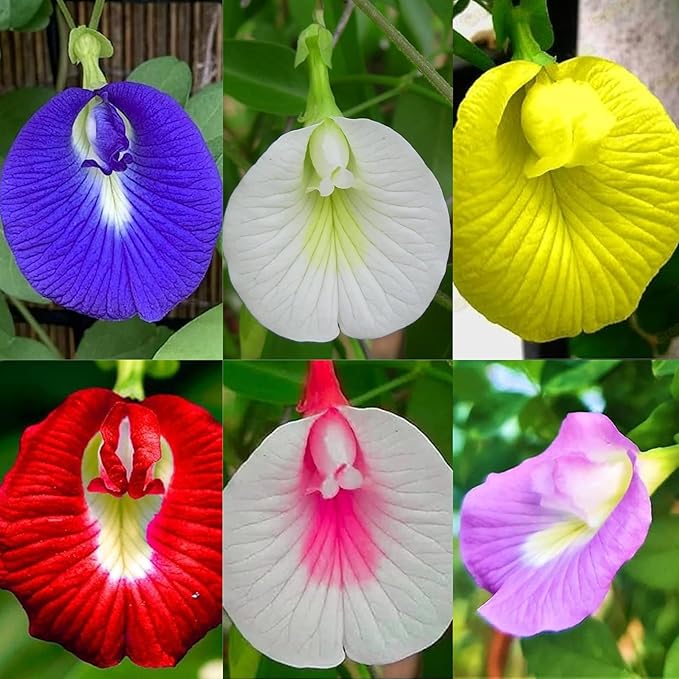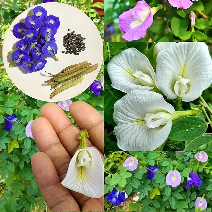 🌸 6-Color Mix – Includes a beautiful variety of single and double petal Butterfly Pea (Aparajitha/Shankupushpam) flowers in shades of blue, white, purple, and more.